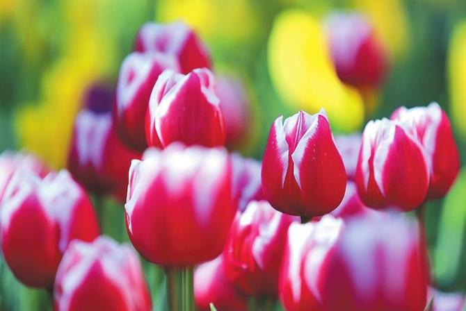 昆明翠湖公园郁金香绚烂绽放