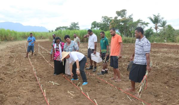 ▲林占熺在斐济指导菌草种植。