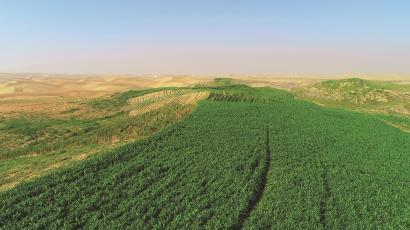 ▲2021年9月17日无人机拍摄的内蒙古阿拉善菌草治沙示范基地。| 国家菌草工程技术研究中心提供