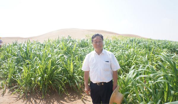 ▲2013年4月,林占熺团队开始探索用菌草治理流沙,现取得了系列的国际领先成果,为黄河生态安全屏障建设提供科学依据和适用技术。图为林教授在阿拉善菌草治沙现场。
