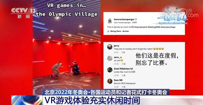 温馨的房间、地道的美食都让运动员们感到宾至如归。而冬奥村里的各式健身设施、娱乐设施也让许多运动员惊叹不已、纷纷打卡。德国单板滑雪运动员莱昂·沃肯斯伯格就晒出了自己畅玩VR游戏的视频。有网友开玩笑说,“他们这是在度假,别忘了比赛”;还有网友说,“太酷了”“看起来很有趣”。
