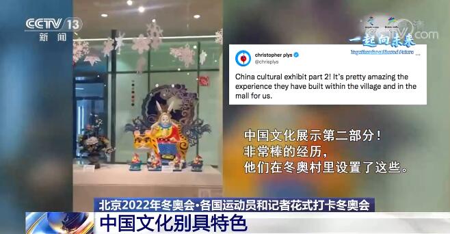 冬奥村里的中国文化元素同样吸引人。美国冰壶运动员克里斯托弗在社交媒体上兴奋地向网友们分享,并配文说道:“中国文化展示第二部分!非常棒的经历,他们在冬奥村里设置了这些。”有网友留言说:“祝你在中国玩得高兴。”“非常棒!科技和中国文化的最好结合。”