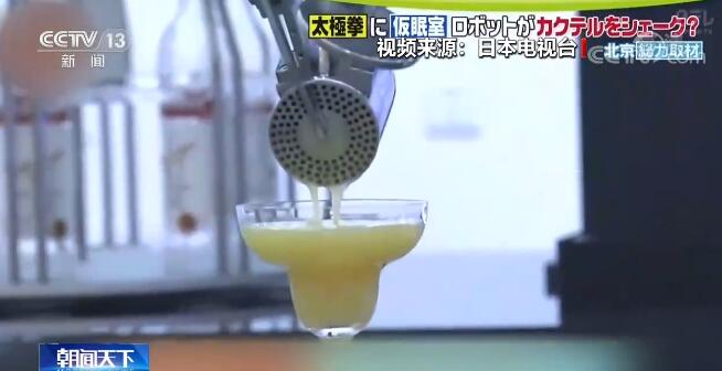 日本电视台的记者则对体验一杯由机器人调制的鸡尾酒颇感兴趣,取酒、榨果汁、加入冰块,然后搅拌,一系列的工序全部由一只机械臂在90秒内完成。