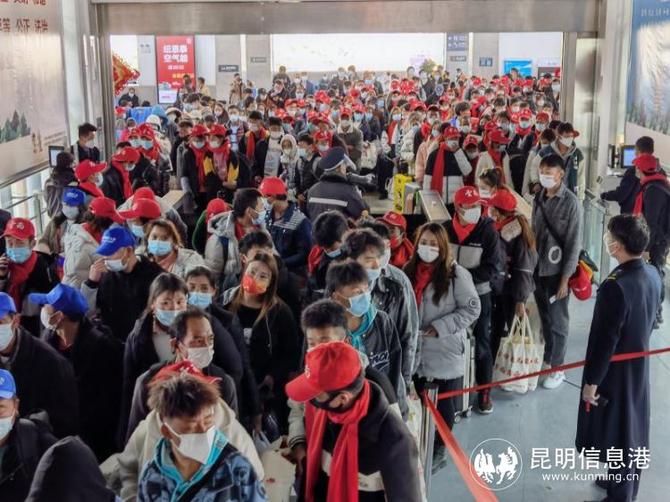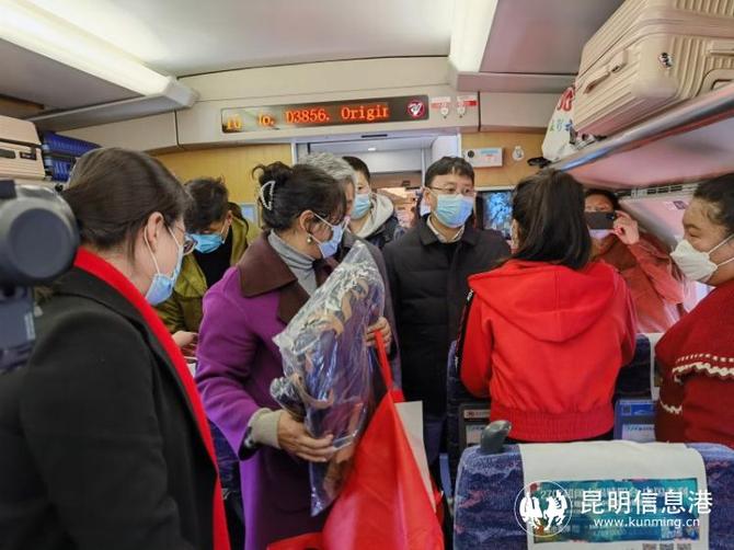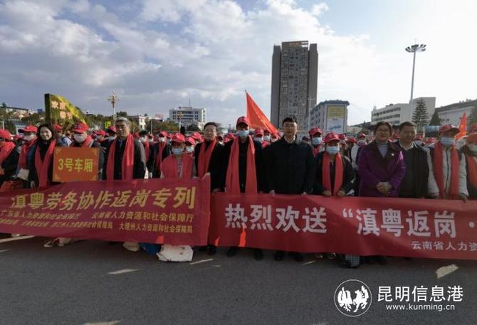 昆明信息港讯 记者江枫 2月11日上午,云南省人力资源社会保障厅、省就业局,省总工会,怒江州政府,怒江州人力资源和社会保障局,大理州人力资源和社会保障局,在大理火车站欢送外出务工人员乘坐“滇粤返岗专列”(G3856次高铁),赴广东广州、珠海等地务工。