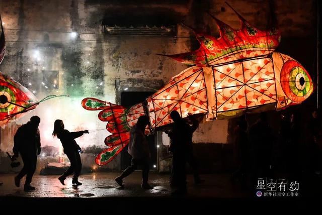 2021年2月26日是农历正月十五元宵节,在安徽省黄山市歙县溪头镇汪满田村,游客和村民嬉鱼灯,闹元宵。新华社记者韩旭 摄