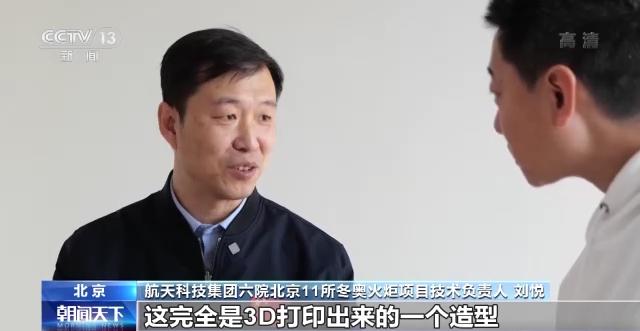 航天科技集团六院北京11所冬奥火炬项目技术负责人 刘悦:火焰最后的要求它是阶梯状的,中心要高一点。这完全是3D打印出来的一个造型,弯制是弯不出来造型和方向的。