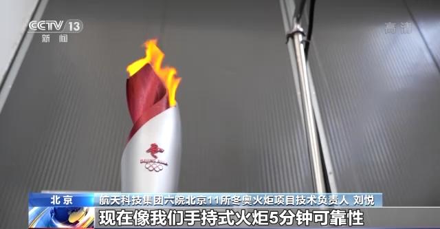 航天科技集团六院北京11所冬奥火炬项目技术负责人 刘悦:是,也得做试验,现在像我们手持式火炬5分钟可靠性是一点问题也没有的,再多几倍也没关系。