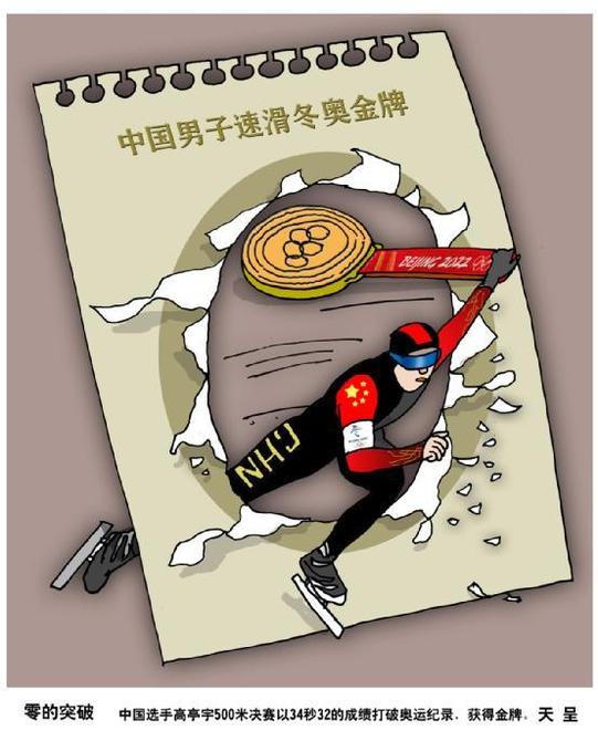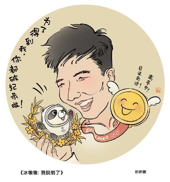 上海国际传媒港举行的“沪上漫画家绘冬奥”主题创作,邀请了沪上8位知名漫画家,共同围绕北京冬奥会赛程实时热点展开即兴创作。四年前,首次参加冬奥会的高亭宇在拿到铜牌时说道:“虽然颜色差不多,可是意义完全不一样”。如今,高亭宇奖牌换金色的愿望达成了!上海的漫画家们也以书画表达了对高亭宇愿望达成的祝贺。