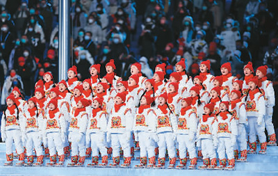 “马兰花合唱团”用希腊语在北京冬奥会开幕式上歌唱。新华社记者 曹 灿摄