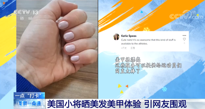 美国“00后”跳台滑雪运动员安娜·霍夫曼在备战跳台滑雪比赛之余,经常在社交网站,晒出自己在北京冬奥村的日常。比如,霍夫曼在冬奥村做了一次美甲。“美甲很漂亮!这些服务可以提供给运动员们简直太棒了!”体验完美甲,又来体验一把冬奥村的美发服务。显然她对理发师的技术很满意。网友留言说:“我喜欢看所有幕后的视频!你看起来很棒!”