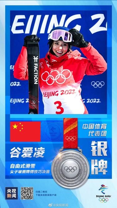 绝地反击!谷爱凌在自由式滑雪女子坡面障碍技巧决赛中,以最后一跳86.23分接近完美的发挥,为中国代表团再添一枚宝贵的银牌!