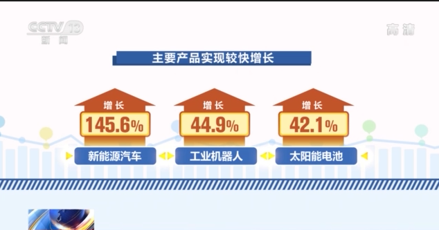 主要产品也实现较快增长,新能源汽车增长145.6%,工业机器人增长44.9%、太阳能电池增长42.1%。