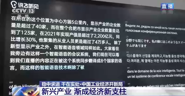 除了新型显示产业,在智能语音领域,同样如此。在智能语音平台,智能语音翻译平台正在将直播内容翻译成十几个国家的语言。