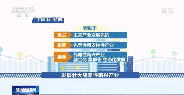 “十四五”规划纲要指出了方向,提出:“十四五”期间,发展壮大战略性新兴产业,着眼于抢占未来产业发展先机,培育先导性和支柱性产业,推动战略性新兴产业融合化、集群化、生态化发展,战略性新兴产业增加值占GDP比重超过17%。
