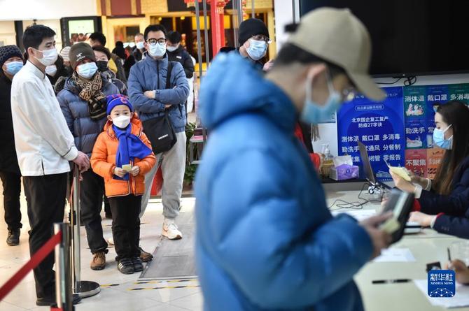 2月14日,顾客从专门的兑付通道进入商店领取预订的“冰墩墩”毛绒玩具。新华社记者 陈钟昊 摄