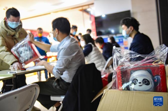 当日,位于北京王府井的北京2022官方特许商品旗舰店兑付第一批(2月8日)预售的“冰墩墩”毛绒玩具,共计900余份。