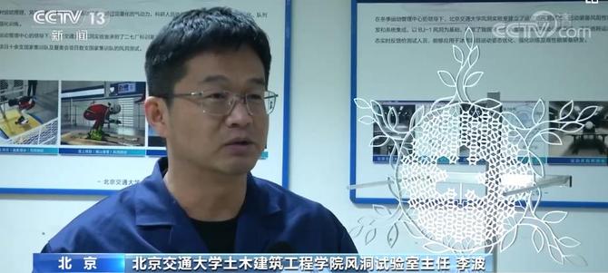 北京交通大学土木建筑工程学院风洞试验室主任 李波:我们在马店桥就有一个监测点,正好这个监测点离我们的“鸟巢”不到3公里,我们通过风洞实验找出来“鸟巢”不同区域的风速大小关系,然后将气象数据和风洞实验的结果结合起来,这样就能够对开幕式当天在这个“大雪花”出现位置的风速进行一个准确的评估。