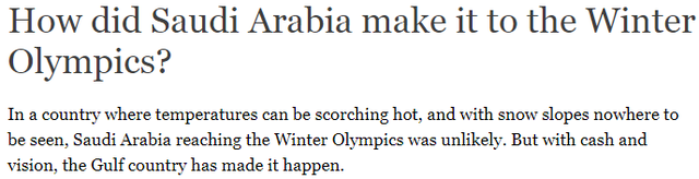 数十年来,冬奥会一直是“冬季运动国家”的独家秀场。如今情况发生了变化,在北京冬奥会上,沙特和海地这两个热带国家首次亮相。