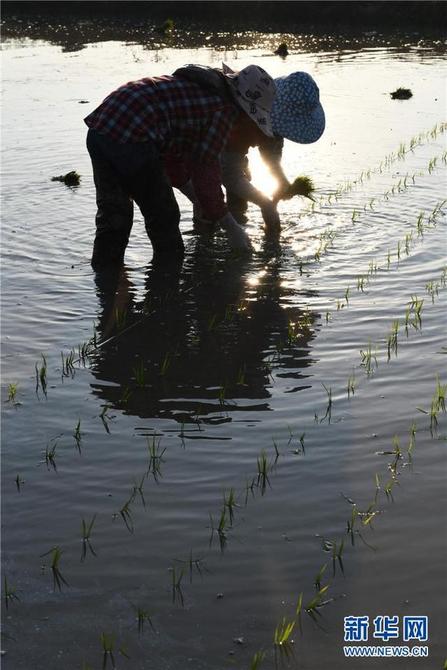 云南省勐海县勐遮镇曼朗村村民在栽插水稻(2月13日摄)。