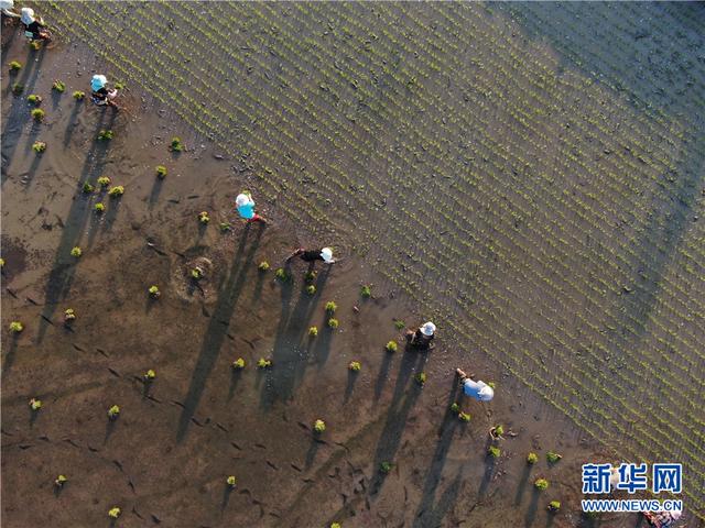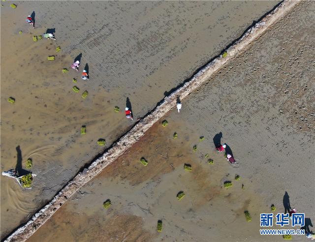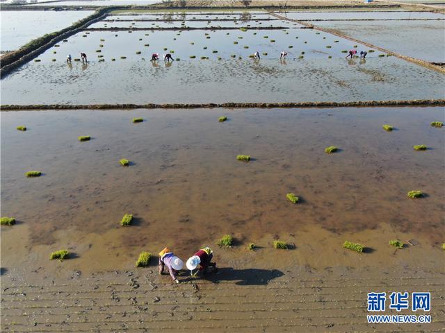 云南省勐海县勐遮镇曼勒景罕村村民在栽插水稻(2月13日摄)。