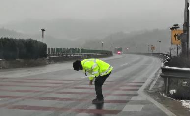 昆曲高速公路曲嵩段红军哨路段气温骤降,空气温度已零下1度,经公路部门、路政和交警“一路三方”会商,为确保行车安全,第二次在红军哨坡顶2124路段实施交通管制撒盐,对红军哨路段双向长下坡实施撒布融雪剂,大约需要20分钟。