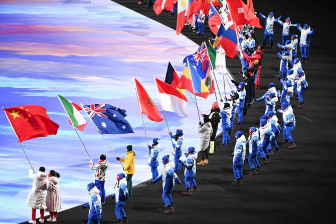 这是代表团旗帜和运动员入场环节。新华社记者 黄宗治 摄