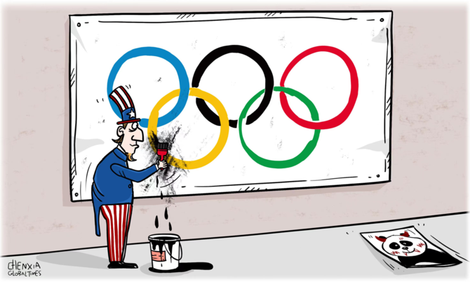 ▲ 以美国为首的部分西方国家仍不遗余力地用谣言攻击中国,试图给本届冬奥会抹黑,结果自然是不得人心、无功而返。 (漫画 | 陈霞)