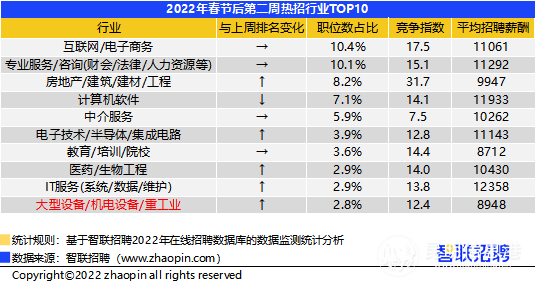 互联网/电子商务的招聘规模位居首位