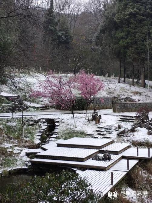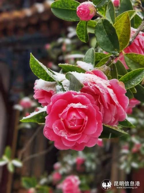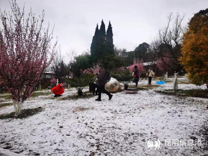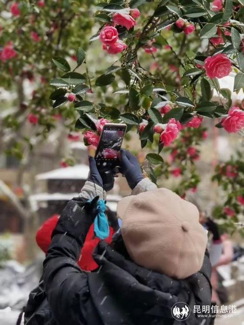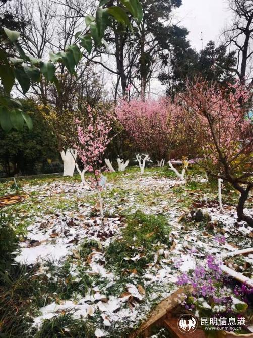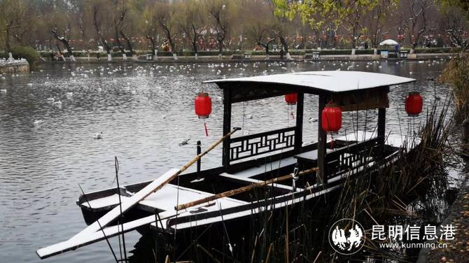 大观公园牡丹盛开,红嘴鸥感受到昆明雪景的别样之美。