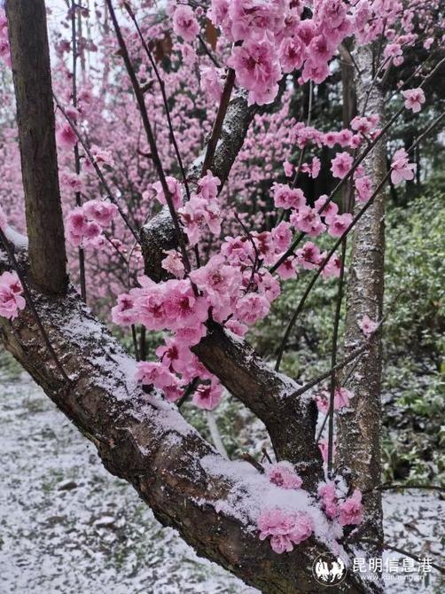 郊野公园盛开的美人梅在霜雪中更显美丽“冻”人。2月22日上午10点,郊野公园发出临时暂停开放的通知,基于园内大面积道路结冰,景区正进行应急处置,为保证游客安全,暂停对外开放,建议游客及市民不入山,具体开放时间另行通知。