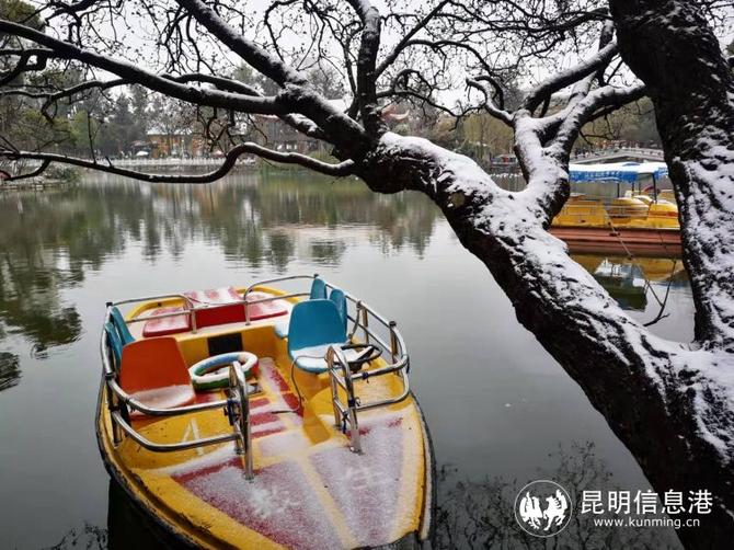 位于市中心的翠湖公园,因为下雪,少了往日的热闹和喧嚣。