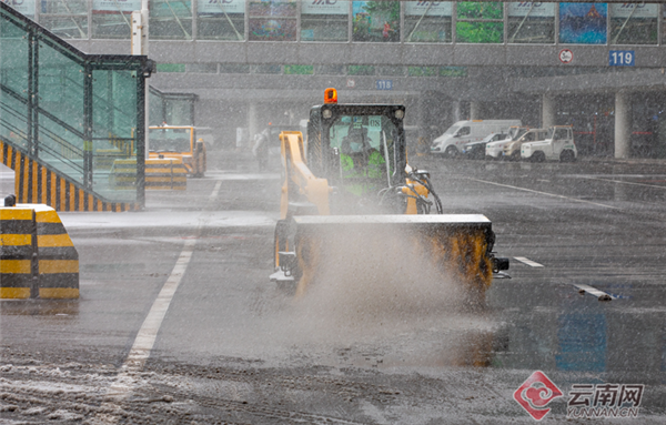 铁路方面,为应对雨雪恶劣天气,中国铁路昆明局集团有限公司及时启动应急响应,加强旅客乘降引导,在客流较大的通道、台阶、站台等关键部位铺设草垫、防滑垫等防滑用品。对因低温和雨雪天气影响,导致昆明南站停运的列车实行免费办理退票和改签手续。加强候车区24小时热水供应,做好重点旅客帮扶工作,及时发布资讯信息,引导旅客合理安排行程。同时严格执行属地防疫消杀、扫码测温规定,确保旅客有序安全出行。在做好旅客服务的同时,安排分布在沿线的铁路工务、供电、电务等专业部门及时上线扫雪除冰,加强设备检查,确保线路安全畅通。