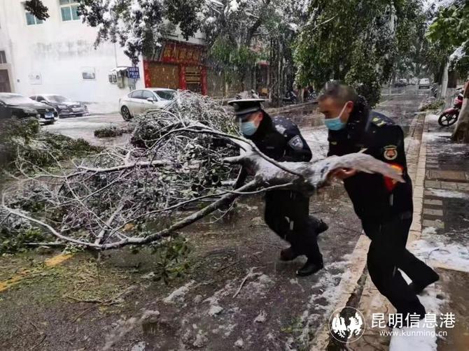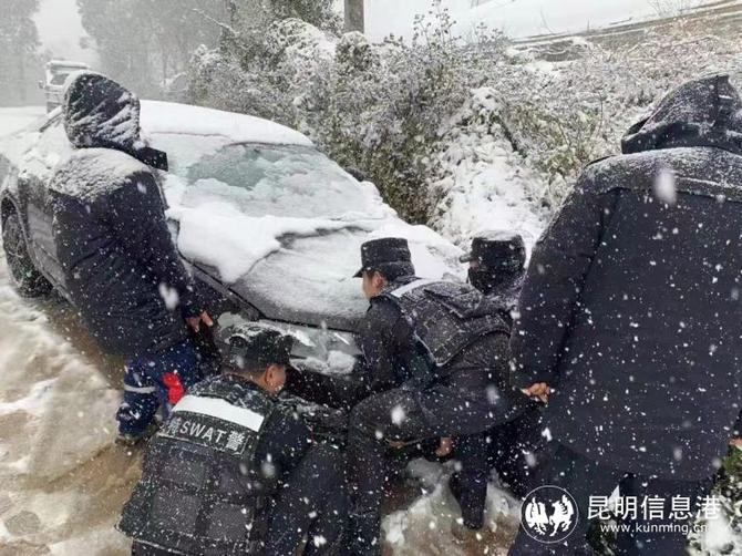 昆明警方结合冬季寒潮降温天气情况和辖区交通运行实际,提前发布预警提示,启动了恶劣天气黄色预警应急处置预案和一级保通勤务,全警动员、全员上岗,全力做好恶劣天气交通安全保障工作。主动会同应急、交运、教育等部门,深入辖区易结冰区域开展隐患排查,及时进行整改整治,并对因积雪结冰等不具备通行条件的道路,第一时间采取断交封控措施,坚决防止人员车辆盲目驶入引发安全事故。