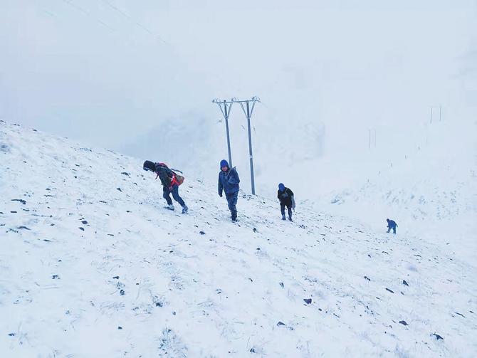 翻越雪山,排故障保通电。