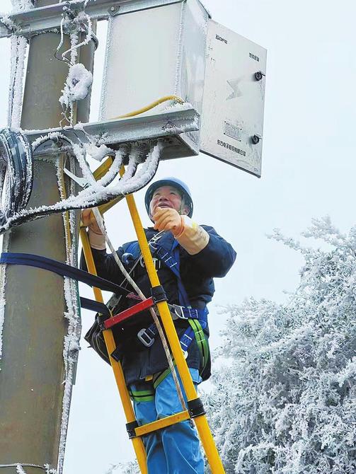 维修基站,确保通信畅通。 通讯员 袁玲燕 摄