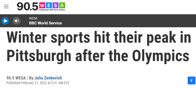 北京冬奥会已经闭幕,但冬季运动却开始受到世界各地的人们追捧。据BBC世界广播电台报道,受冬奥会的影响,美国匹兹堡的溜冰场和滑雪场持续涌入大量游客。疫情之下,人们找到了一种方式“享受”冬天。