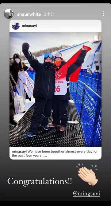 作为中国单板滑雪运动员苏翊鸣的偶像,肖恩·怀特也在苏翊鸣获得男子单板滑雪大跳台冠军之后,在自己的社交媒体上发文表示祝贺。