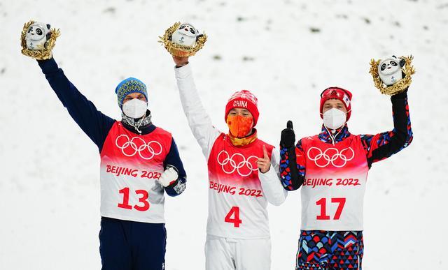 在2月16日的自由式滑雪男子空中技巧决赛中,中国队选手齐广璞摘得金牌,乌克兰选手亚历山大·阿布拉缅科(Oleksandr Abramenko)和俄罗斯奥委会选手伊利亚·布罗夫(Ilia Burov)分获银牌和铜牌。在最终名次出炉后,他们击掌并紧紧拥抱,分享喜悦的瞬间。