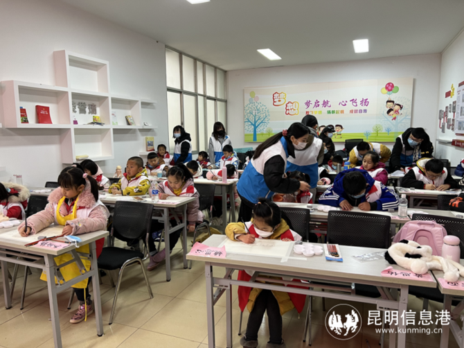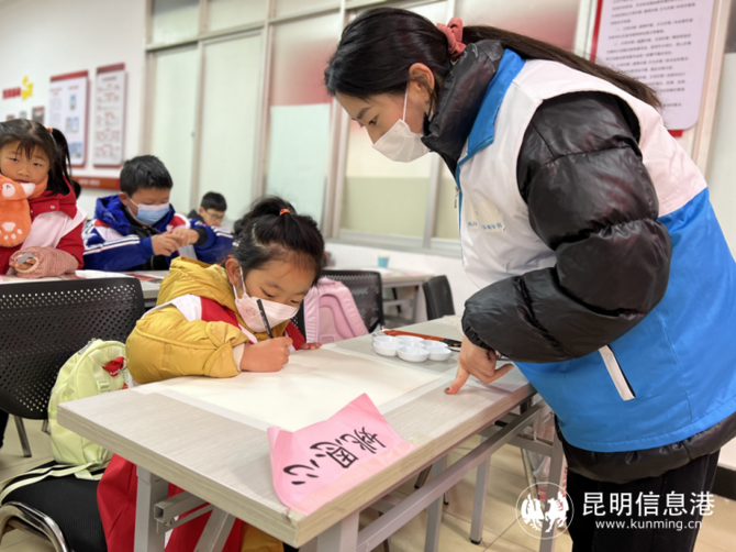另一边,云南农业大学研一学生吴建美本月21日刚到金碧街道弥勒寺社区报到,她和另外4名大学生很快投入到社区组织的“寒假安心托管班”工作中,带领社区30余名儿童学习绘画、泥塑、手工等课程。