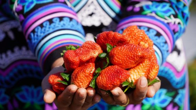 楚雄彝族自治州永仁县,土地肥沃,阳光充足,四季瓜果飘香。12月至次年2月,永仁草莓陆续成熟,销售到全国各地备受市场青睐。草莓是永仁县特色水果的靓丽名片。