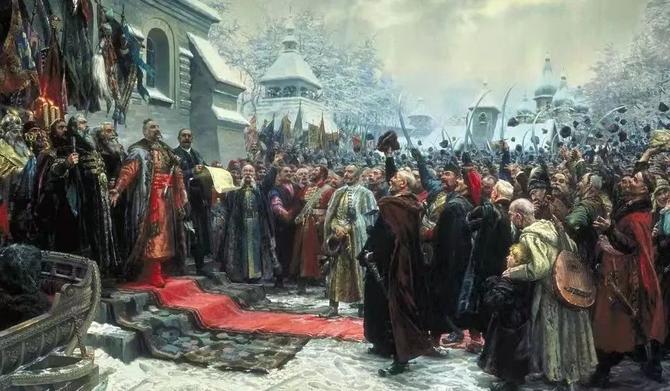 为了寻求帮助,哥萨克领袖就跟沙俄签订了协议,接受沙俄的统治与保护。双方签订了一份理清俄乌历史关系的重要文件——《佩列亚斯拉夫协议》。