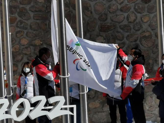 明天,冬残奥村将迎来正式开村。昨天下午,延庆冬奥村举行了降旗仪式,冬奥代表团旗帜降下,冬残奥代表团旗帜缓缓升起,标志着延庆冬残奥村预开村。