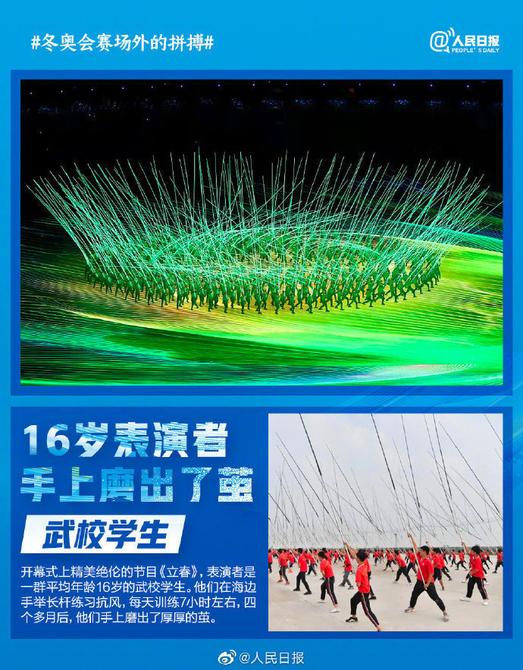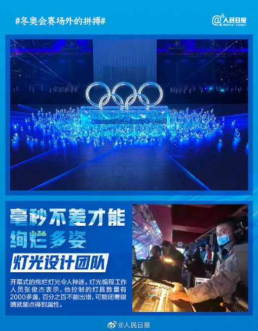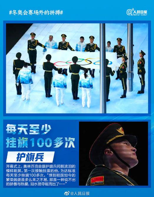 冬奥赛场之外的拼搏,也值得被看见。开幕式上的护旗兵,每天挂旗100多次;随队医生每天练滑雪,为有突发能2分钟抵达;精美绝伦的节目背后,是百分百不能出错的灯光编程人员和手磨出茧的表演者...冬奥人的台上一分钟台下十年功,让人明白所有付出都有意义。为冬奥人喝彩,为冬残奥会加油!