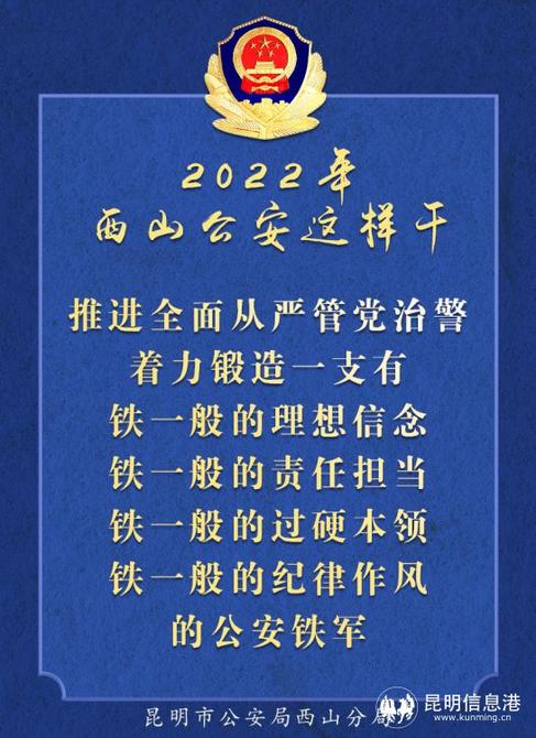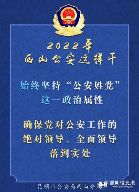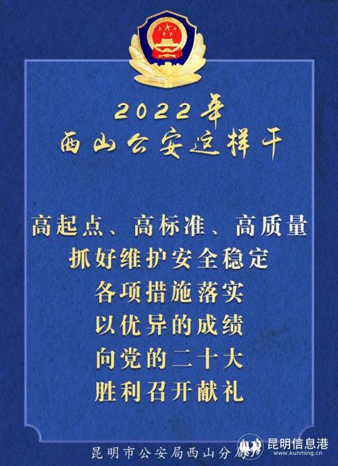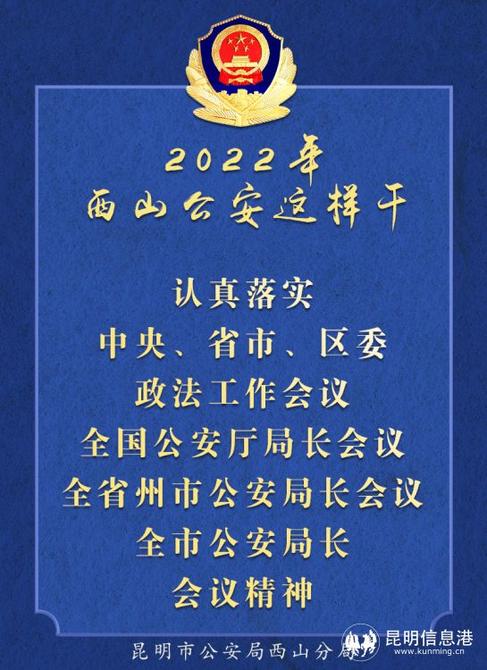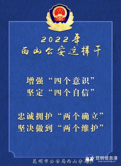 奋楫新征程,扬帆再出发。2022年,西山公安全警将以时不我待的赶考心态,奋发有为的进取姿态,积优势为胜势,踔厉奋发,笃行不怠,奋力开创工作高质量发展新局面,为捍卫全区政治安全、维护社会安定、保障人民安宁作出新的更大贡献,以更加优异的成绩迎接党的二十大胜利召开!(昆明信息港 记者合宇聪)