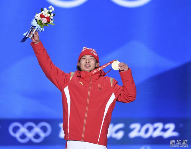 2月18日,北京2022年冬奥会自由式滑雪女子U型场地技巧决赛在张家口云顶滑雪公园举行。中国队选手谷爱凌夺得此项目金牌。