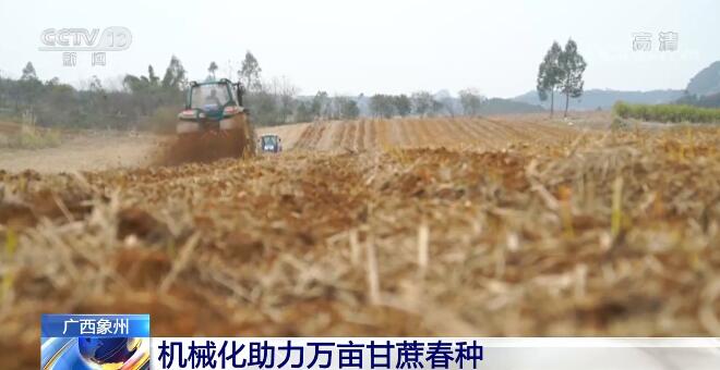 在广西象州县石龙镇大蒙村,1400多亩甘蔗开种,各类大小型号的农机设备均开足马力。甘蔗种植是石龙镇的支柱产业,也是乡村振兴的特色产业之一,全镇甘蔗种植生产保护区5.1万亩,其中,“双高”糖料蔗种植面积3.3万亩。