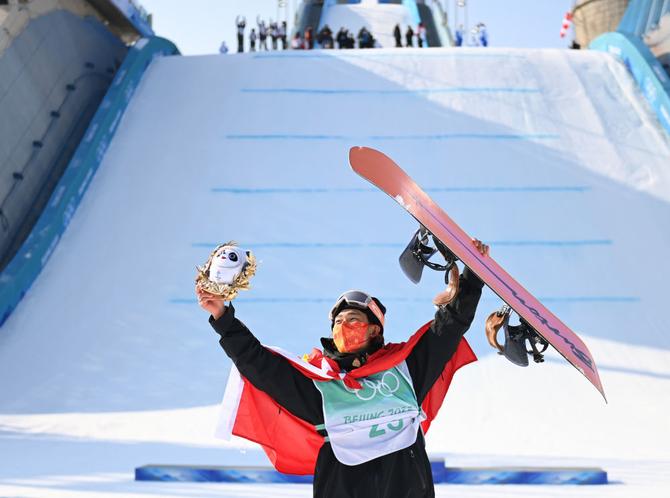 2月15日,北京2022年冬奥会单板滑雪男子大跳台决赛在北京首钢滑雪大跳台举行。中国选手苏翊鸣夺得金牌。新华社记者黄宗治摄