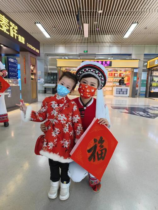 机场通过多种方式积极营造良好春运氛围。春节期间,机场到处都凸显新春佳节喜乐团圆的“春节”年味,候机楼装点着中国结和大红灯笼等烘托喜庆的装饰物,机场地服部工作人员身穿白族金花阿鹏服装开展特色服务,为旅客、机组送去祝福和新春礼品,在登机广播、服务热线中添加节日问候语,实实在在让大理机场的春运温度看得见、摸得着,真情真切为旅客营造了温暖舒适的乘机环境。