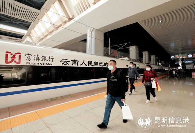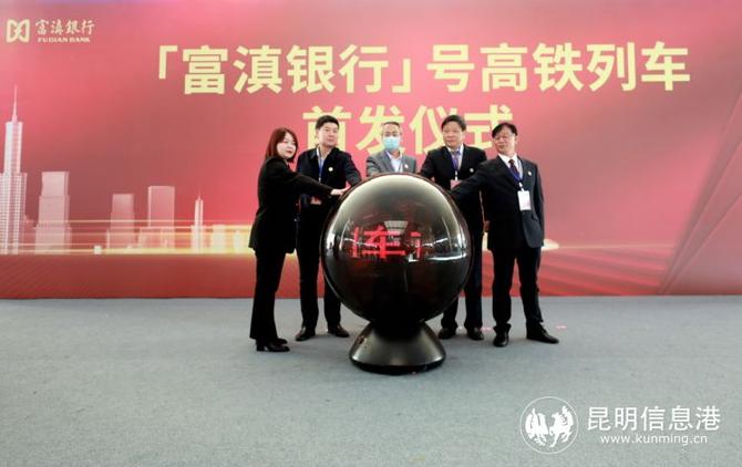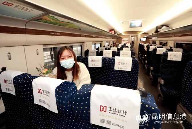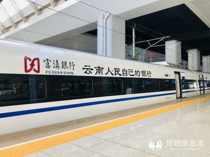 昆明信息港讯 记者上官艳君 3月1日上午10时04分,一列满载着金融元素的“富滇银行”号高铁列车从昆明南站启动,驶向临沧站。这是富滇银行以高铁为载体,开展品牌形象综合营销的新举措,开启了金融高铁合作新模式。