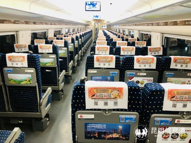 此次“富滇银行”号以高铁列车为载体,分别在列车外车身、座椅头枕巾、座椅桌板、车厢行李架、车厢内海报、列车门贴、列车语音、列车LED显示屏等多种媒体,全方位向高铁乘客展示富滇银行品牌形象,向高铁列车途经城市讲述“富滇故事”。